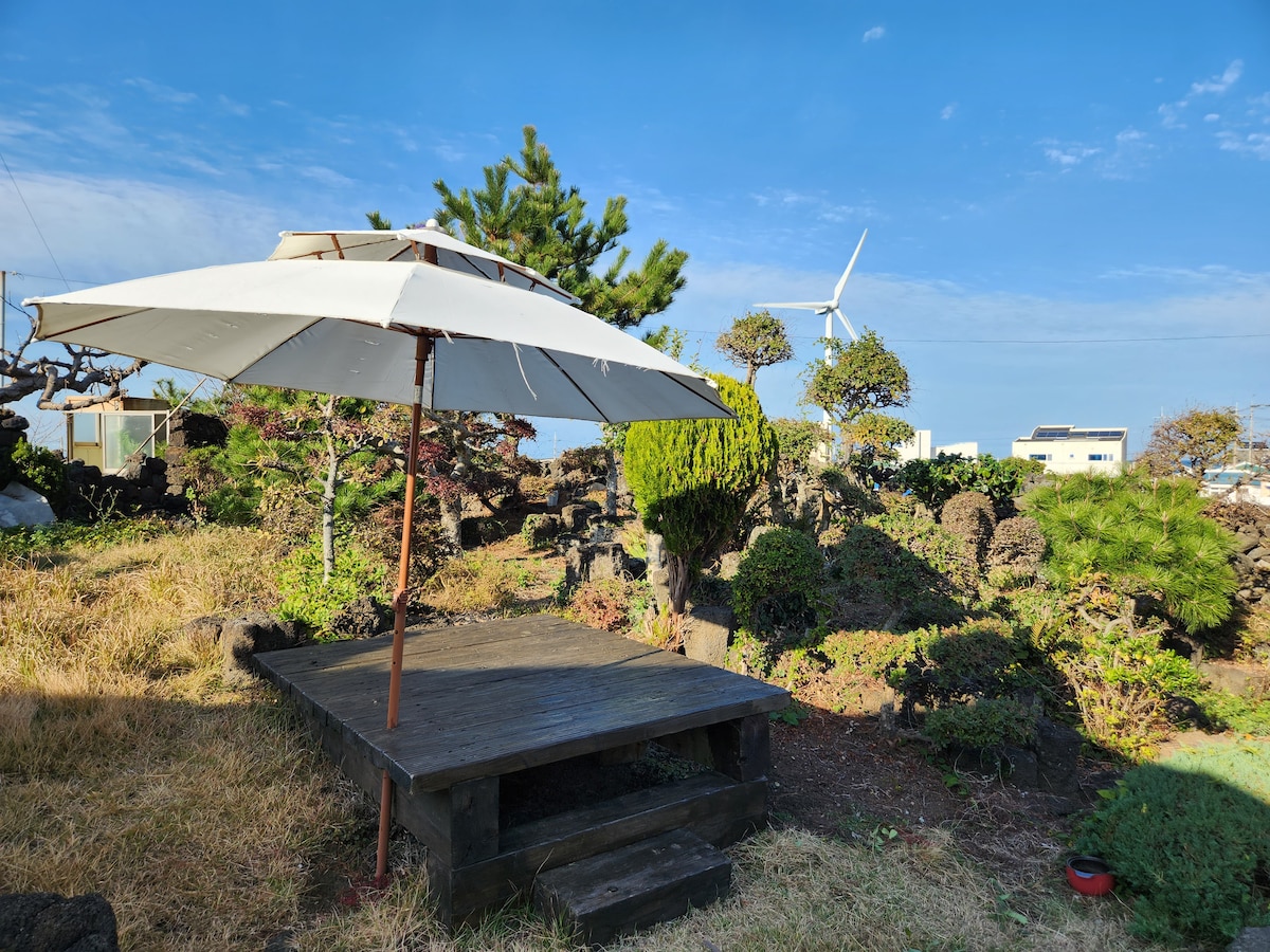 Ez egy Jeju kőház, amely egy csendes tengerparti faluban található Jeju-sziget keleti részén. - 3 perc sétára van a tengertől. Híres kávézók és éttermek találhatók itt. - Vannak gerendás projektorok és érzelmi filmek, amelyek az ágyon és az étkezőasztalon láthatók. - Jeju-t egy Jeju kőfalakkal és száraz virágokkal díszített házban érezheted. - Pihenhetsz egy kicsit, miközben a privát hátsó udvart nézed. - Konyhai eszközök állnak rendelkezésre az egyszerű főzéshez, és saját reggelit készítünk (kenyér, lekvár, vaj, gyümölcslé, kávé, gyümölcs stb.).