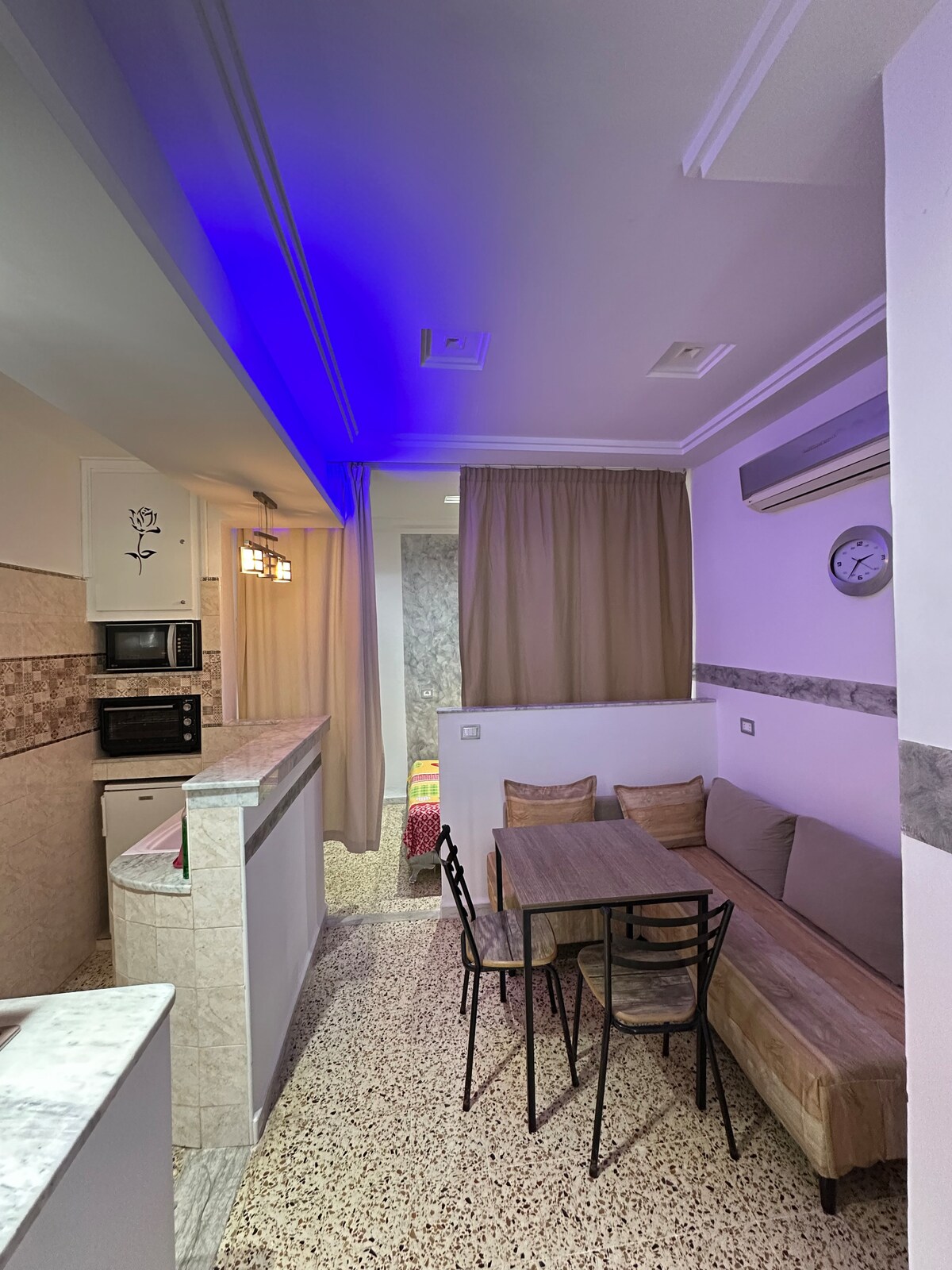 Pihenj ebben a csendes és stílusos stúdióban, ahonnan lenyűgöző kilátás nyílik a Maamoura-tengerre. Ideális egy pihentető tartózkodáshoz, és minden kényelmet biztosít, amire szükséged van. *Hangulatos szoba: Kényelmes ágy és kifinomult bútorok. *Felszerelt konyha: Minden, amire szükséged van a könnyű főzéshez. * Modern nappali: tévé, Wi-Fi és erősítő a magával ragadó légkörért. *Nagy terasz: Ideális a kilátáshoz, grillezéshez vagy egy barátságos estéhez. Tökéletes egy párként, családdal vagy barátokkal való tartózkodáshoz