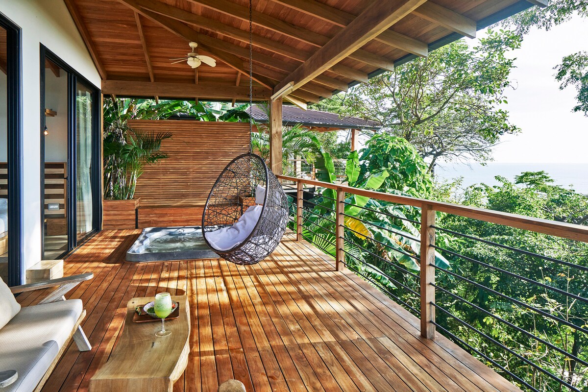 Experience a unique re|TREE|at Ecocoon Treelodge, elevated among giant trees, only minutes away from Playa Hermosa's pristine waters. Nestled high among the towering trees, our exclusive treehouse villas - and renowned “ecocoons” - await to transport you to a realm of serene tranquility and unparalleled connection with nature. Relax with our luxurious spa amenities: sauna, cold plunge, and jacuzzi! Upon request: yoga, massage, ATV rental, surf class/coaching, homemade breakfast and more!