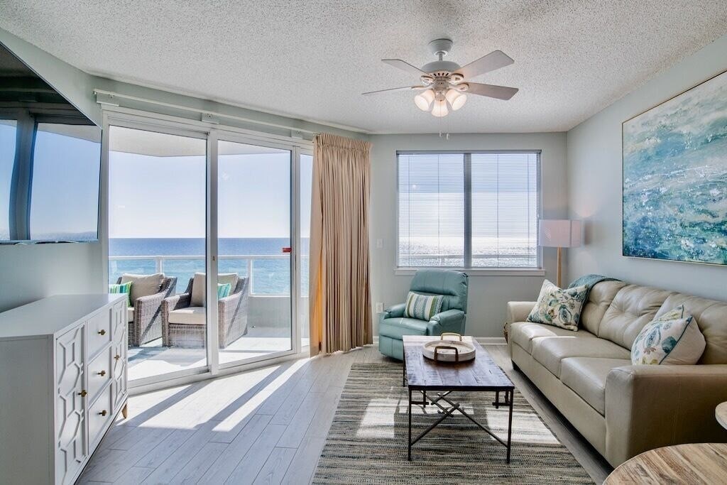 Where breathtaking views meet prime location. Enjoy: -Stunning private balcony with sweeping gulf views. -Step out of your unit and on to the beach. -Complimentary parking included in cleaning fee. -1 King Bedroom + built-in bunks + queen sofa bed. -Private pool right on the beach. -Located in the heart of Gulf Shores, walking distance to The Hangout and much more. -Newly renovated unit! -"Guest Favorite" designation ranks us in the Top 5% of all AirBnB listings!