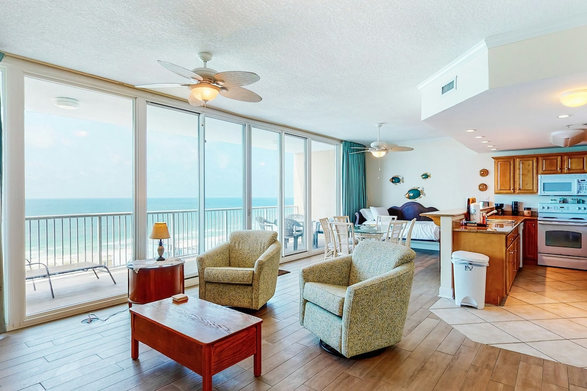 Orange Beach szívében található ez a luxuslakás, ahonnan gyönyörű kilátás nyílik a cukorfehér strandokra és a smaragdzöld vizekre. Az erkélyről nézheted a fenséges napfelkeltét, vagy megcsodálhatod a delfineket. Ha szünetre van szükség a strandtól, élvezheted a számos kényelmi szolgáltatást a helyszínen. Az Orange Beach az egész családnak kínál programokat, beleértve az éttermeket és a vásárlást. Egy szórakoztató nap után készülj fel a vacsora elkészítésére a jól felszerelt konyhában, lazíts a vidám dekorációval és a kényelmes üléssel.