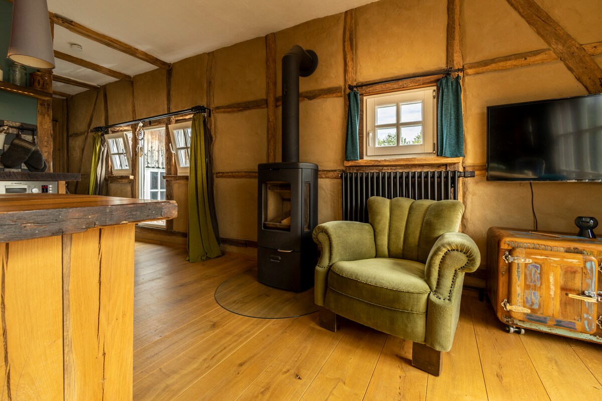 Gemütliches und mit ganz viel Liebe eingerichtetes Appartement in altem Fachwerkhaus. Separater Eingang, sonnige Terrasse.. hier "stören" nur die Vögel. Das Anwesen liegt am Ende einer Sackgasse inmitten von Wald und Wiesen. Ideal für Wanderer und Biker, los gehts direkt vor der Tür. Im großen Garten hinter dem Haus könnt ihr nach Lust und Laune in der Sonne liegen, unter dem Walnussbaum gemütlich sitzen, die Sauna nutzen (10,- für Nebenkosten ) oder den Tag am Lagerfeuer ausklingen lassen!