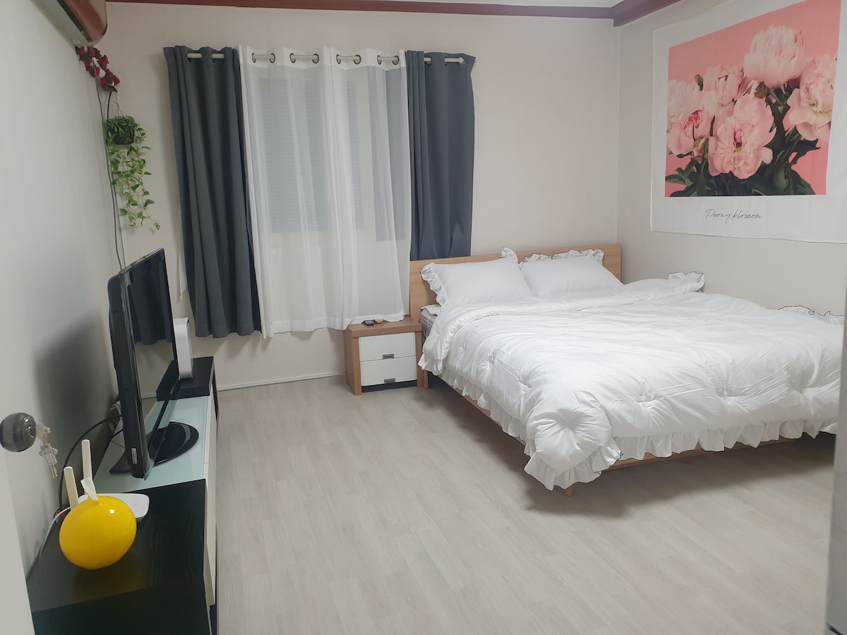 🧈Üdvözlünk a Butterhouse-ban! 🍔 🌟 Ha egymást követő éjszakai kedvezmény vagy, előre vedd fel velünk a kapcsolatot. :) 🚶Az Uncheon állomástól 5 perc sétára található. 🚘 Kevesebb mint 10 percet vesz igénybe a buszpályaudvartól, a Kia Champions Fieldtől és a Sangmu kerülettől. 🍳 Ingyenes halas zsemlét az eseményen való részvételhez💗 🛌 Széles, queen méretű ágy és kényelmes, szuper egyszemélyes ágy áll rendelkezésre 🅿️ Van egy nagy parkoló, így ingyenesen, korlátozás nélkül parkolhatsz. 🍷 Beszélj, hogy enyhítsd a napi fáradtságodat!