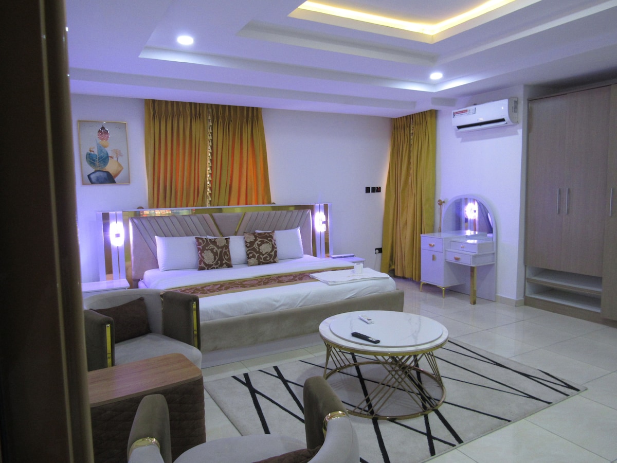 Fedezd fel Abuja legexkluzívabb negyedében élő luxust. Ez az 1 hálószobás hotellakás éjjel-nappali áramot, gyors wifit és éjjel-nappali biztonságot kínál csendes és privát környezetben, amely tökéletes az üzleti utazóknak vagy a kényelmet kereső pároknak. Abuja szívében található, pár percre a nagykövetségektől, prémium éttermektől, bevásárlóközpontoktól és kulcsfontosságú üzleti központoktól, így ideális rövid vagy hosszabb foglalásokhoz. Élvezd a stresszmentes élményt nyújtó nyugodt környezetet.