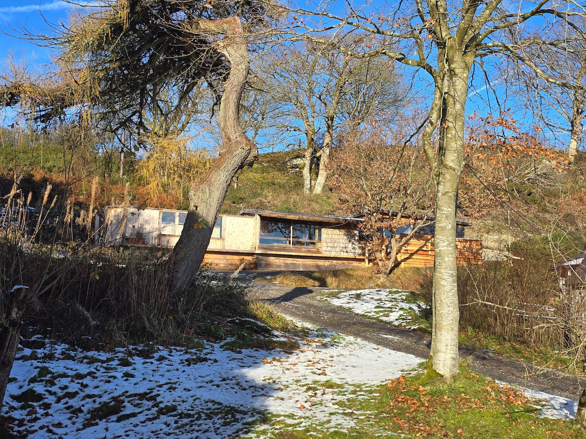 Öko víkendház kültéri fürdővel és kilátással a hegyekre