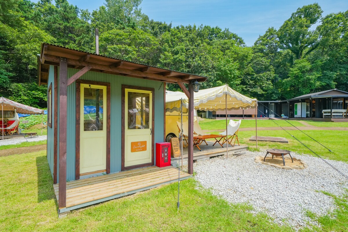 ‘미대륙을 횡단한 락우드 카라반에서 특별한 힐링을 경험하세요!’ *나무로 우거진 숲이 있는 앞 마당에 오직 한 대의 카라반만 있습니다. 조용한 휴식을 원하는 분들께 안성맞춤입니다. ———————————————— 내부를 거의 개조하지 않아 미국식 오리지널 카라반의 정취를 물씬 느낄 수 있습니다. 주변의 푸른 녹음으로 둘러싸여진 카라반 안에서 좋아하는 음악을 들으며 갓내린 커피향을 맡고 있으면 마치 미국의 시골을 돌아다니다 풍경 좋은 곳을 발견하여 차박을 하는 것 같은 느낌을 받으실 겁니다. 날이 좋으면 좋은대로 비가 오면 운치있게 테라스에 앉아 딱다구리 소쩍새가 우는 자연의 경치를 즐겨보세요. 밤하늘의 별을 보면서 자연과 교감하는 경험을 해보세요. 숲 속의 작은 카라반은 캠핑의 자유로움과 내 집 같은 안락함을 함께 느낄 수 있는 공간입니다. 혼자 오셔서 조용히 책을 읽거나 음악을 들으셔도 좋고 반려견, 연인, 가족과 함께 오셔도 좋을 곳입니다.