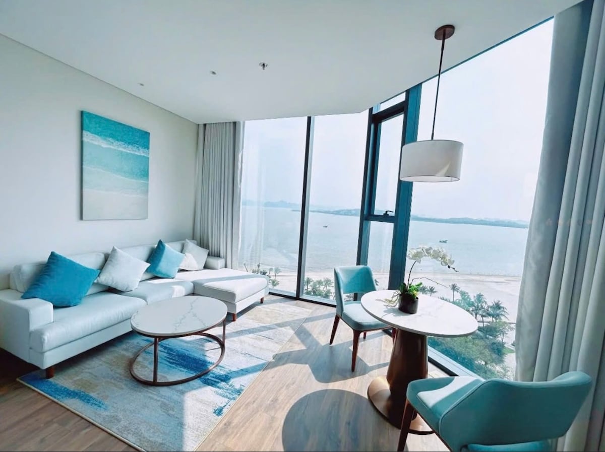 Luxury Apartment at A La Carte Ha Long – Sea & Sunset View (VIP Corner Apartment) Élvezd a modern helyet lélegzetelállító kilátással a tengerre és a fenséges mészkőhegyekre, valamint a lenyűgöző naplementéket közvetlenül a lakásodból. Dolgozz kényelmesen egy külön munkaterülettel és nagy sebességű Wi-Fi-vel. 🍽 A szobaár nem tartalmazza a reggelit és az olyan kényelmi szolgáltatásokat, mint a medence, jacuzzi, gyógyfürdő, bár... 🚗 Kiváló elhelyezkedés: 1 perc sétára a strandtól, 5 perc autóútra az éjszakai piactól. ✨ Éld át a tökéletes nyaralást!