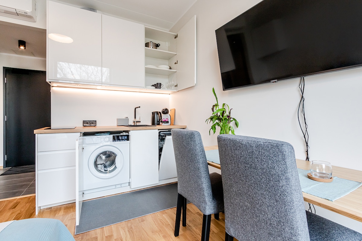 Az apartman 750 méterre található Tartu központjától, és egy új épületben található. Az apartman a harmadik emeleten található. A lakás mindennel rendelkezik, amire szükséged van ahhoz, hogy otthon érezd magad. Parkolás egy fűtött garázsban a ház alatt.