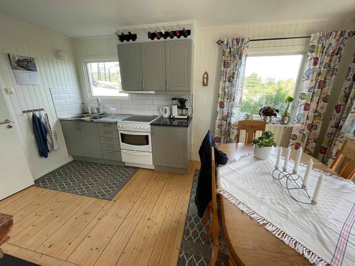 Tengerre néző ház eldugott helyen. Konyha és nyitott terű nappali, 2 hálószoba, 1 fürdőszoba, 1 WC. A 3. hálószoba egy különálló vendégházban található. Teljesen felszerelt konyha mosogatógéppel, mikrohullámú sütővel, indukciós tűzhellyel és sütővel. 200 méterre a tengertől, sziklákkal és homokos stranddal. Több berendezett terasz, pázsit és grill. Sétatávolságra az élelmiszerbolt, a buszmegálló és a kompkikötő Åstol és Dyrön felé Tjörnben minden megtalálható: gyönyörű természet, úszás, horgászat, evezős sportok, túrázás, művészet és éttermek.