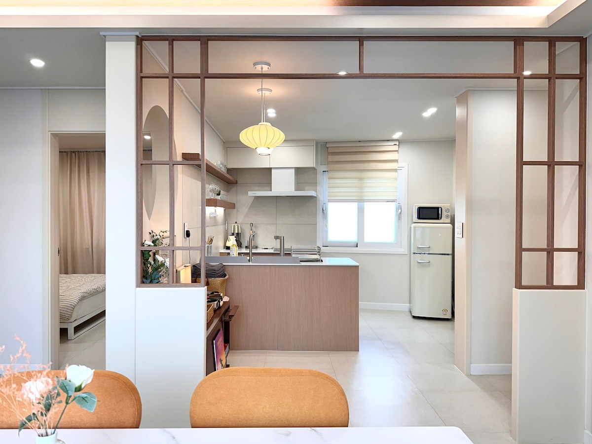 A warm welcome to our guests from the US (New Jersey, PA, and more) and Singapore! Stay with 207Stay in the heart of 'Jeonpo Sait-gil', selected by The New York Times. Location: 3 min walk to Jeonpo Stn, 1 stop to Seomyeon. Space: Spacious 3 BR home perfect for families and groups. Experience Busan's trendiest cafes and local shops with our top-quality service!