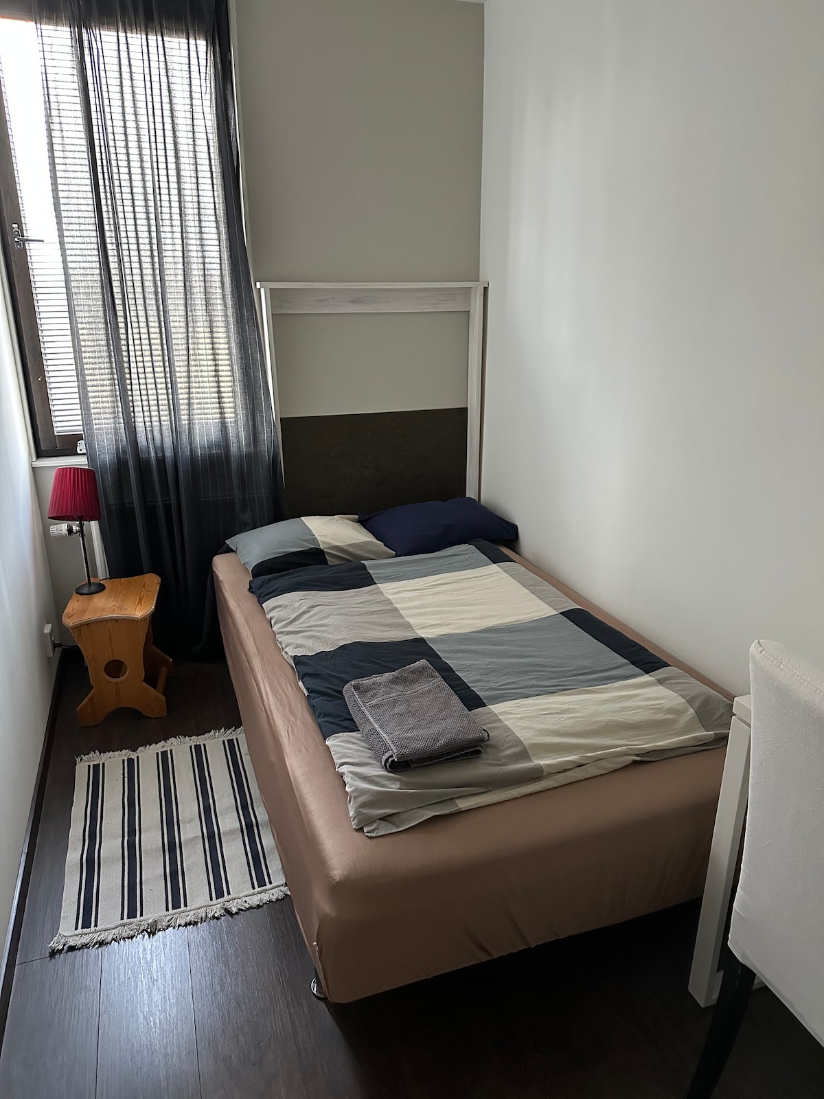 Vadonatúj építésű lakás a villában! 2 felnőtt és egy gyermek elszállásolására alkalmas. Nagy, 10 négyzetméteres fürdőszoba szaunával, fürdőkáddal, zuhanyzóval, wc-vel és mosdóval. Körülbelül 20 négyzetméteres szoba kétszemélyes ággyal. Az ár minden lepedőt és törülközőt tartalmaz. A csomag egy kanapé-csoportot és egy teakonyhát is tartalmaz. Az érkezésed napján kapsz egy kódot az ajtóhoz a házigazdától. Olyan későn érkezhetsz, amilyen későn csak szeretnél. Az elektromos autók töltődoboza kilowattóránkénti áron is elérhető. A legtöbb világítás szabályozható. Fedett verandán terasz áll rendelkezésre.
