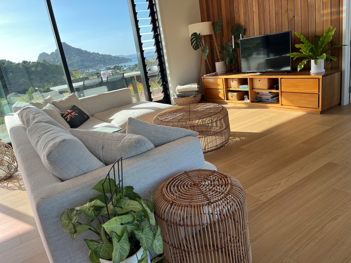 Luxusvíkendház Coromandelben. Lenyűgöző kilátás a tengerre.
