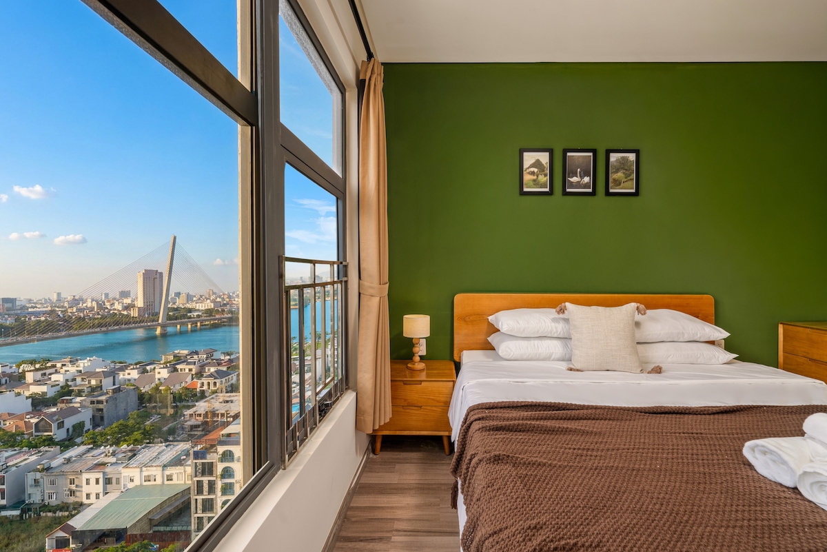 EGYEDÜLÁLLÓ MŰVÉSZETI GALÉRIA AZ ÉGBEN – IGAZÁN EGYEDI DA NANG-BAN! Az Indochina Riverside Tower 24. emeletén található, 140 m²-es penthouseból kilátás nyílik a Han-folyóra, a Sárkányhídra és a városra, a horizonton pedig lágy tengeri árnyalatok láthatók. Az erkélyről nézheted a hajókat, a forgó Han-hídot és a Sárkányhíd hétvégi tűzijátékát. A nyüzsgő Bạch Đằng utcán, a Han piac közelében, takarítással, medencével, edzőteremmel és asztalitenisszel, ideális családoknak, üzleti utazóknak és hosszú távú foglalásokhoz.