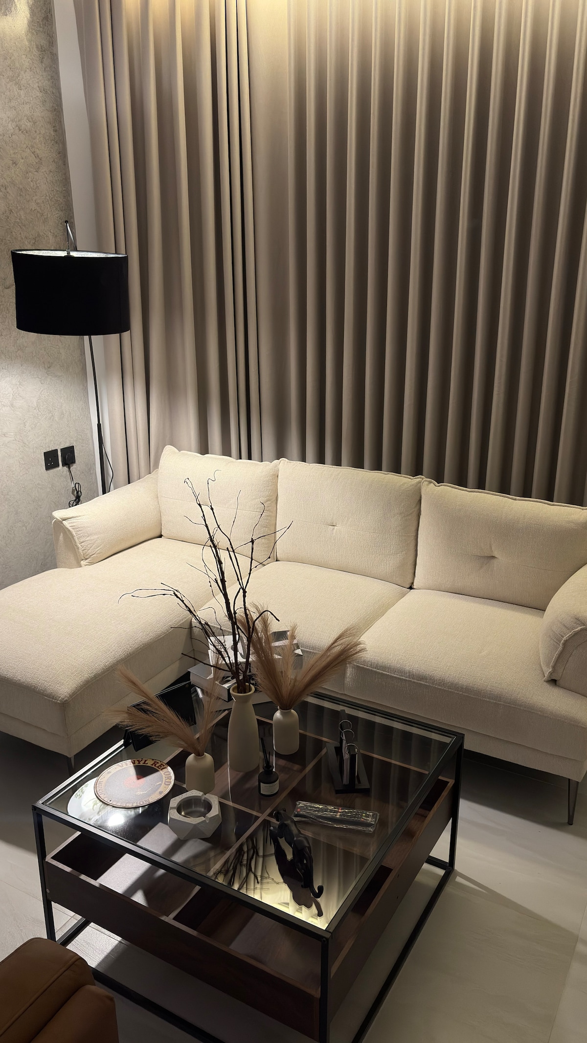 Tágas és elegáns lakás nemdohányzóknak intelligens bejárattal és kiváló helyen, éttermek és kávézók közelében (Starbucks, Loft, Al Baik..) A lakás nappalival, étkezővel, két hálószobával, konyhával és csendes szabadtéri udvarral rendelkezik a szabadtéri kikapcsolódáshoz. A konyha stílusosan lett kialakítva, hogy megfeleljen az Ön igényeinek, és fel van szerelve sütővel, hűtőszekrénnyel, főzőeszközökkel és kávésarccal. A kávésarok kávéfőzőt és többféle kávét és teát tartalmaz, beleértve az arab kávét is. A nappaliban egy 60 hüvelykes okostévé található, amely minden sport- és szórakoztató platformot tartalmaz, nézze meg a vip sportot, Netflix