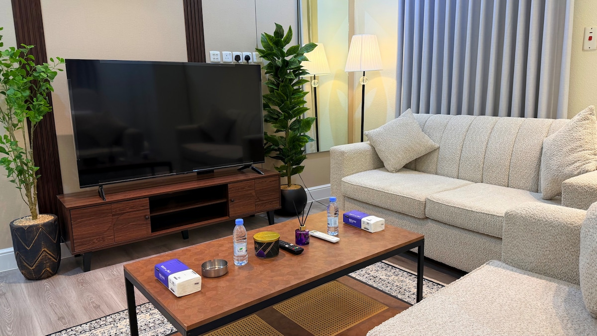 Élvezd a lakás jellegzetes dizájnját, amely egy hálószobából és egy mellékcsarnokból áll, amelyeket nagy gonddal és szeretettel terveztek, hogy megfeleljen nagyra becsült vendégeink törekvéseinek. 5G-s sebességgel biztosítottuk neked az internetet, hogy élvezhesd a kedvenc filmedet egy 65 hüvelykes tévéképernyőn, 10 percre a repülőtértől és 4 percre az Al Othaim bevásárlóközponttól. Élvezheted a West Corniche Parkot is, amely 5 perces sétával elérhető