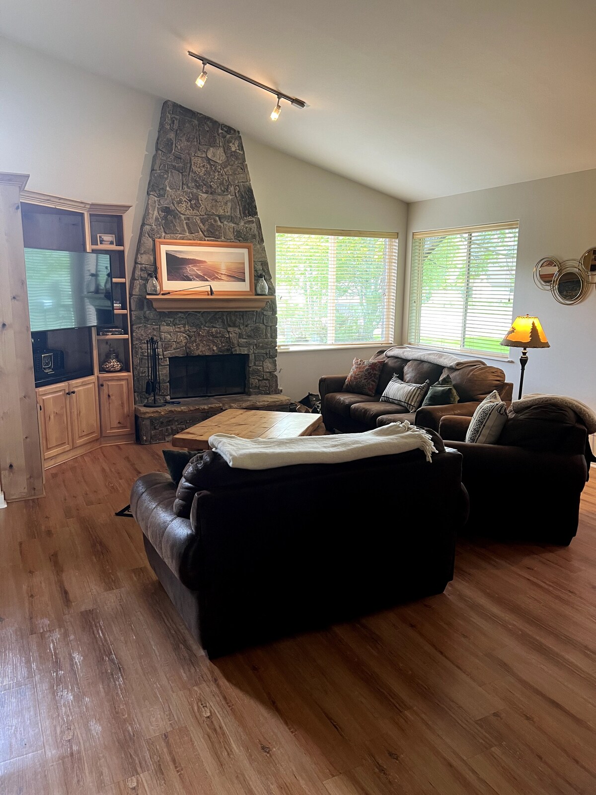 Comfortable and spacious 2 bedroom 2 story townhouse. Open living and dining space. Sofa bed in living room. Upstairs bedroom with full bath in hall, and large Master bedroom with large attached heated floor bathroom downstairs. Two car small attached garage, Walking distance from Hailey Main street restaurants. 11 miles from world class skiing, open air summer symphony.