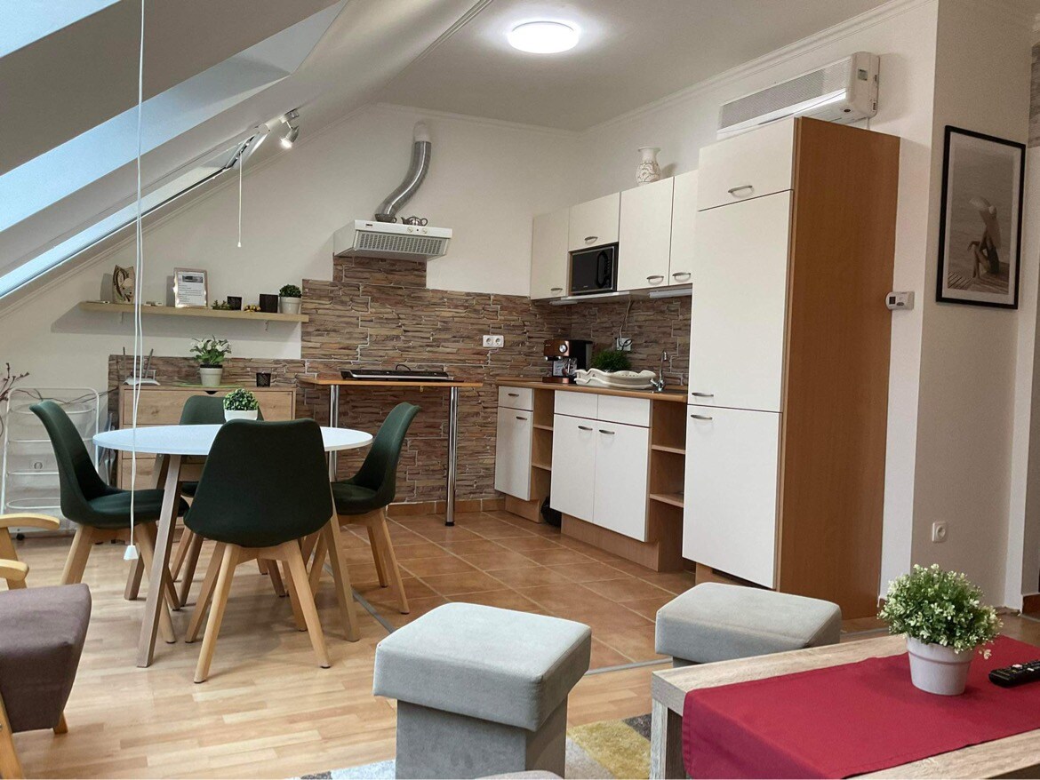 Debrecen központ közelében, egyetem mellett várja vendégeit ez az egyedi kialakítású lakás. Tökéletes pároknak családoknak kikapcsolódásra, vagy akár üzleti célból városunkba érkezőknek. A lakáshoz wellness lehetőség biztosított a ház tetőterén, gyönyörű kilátással.