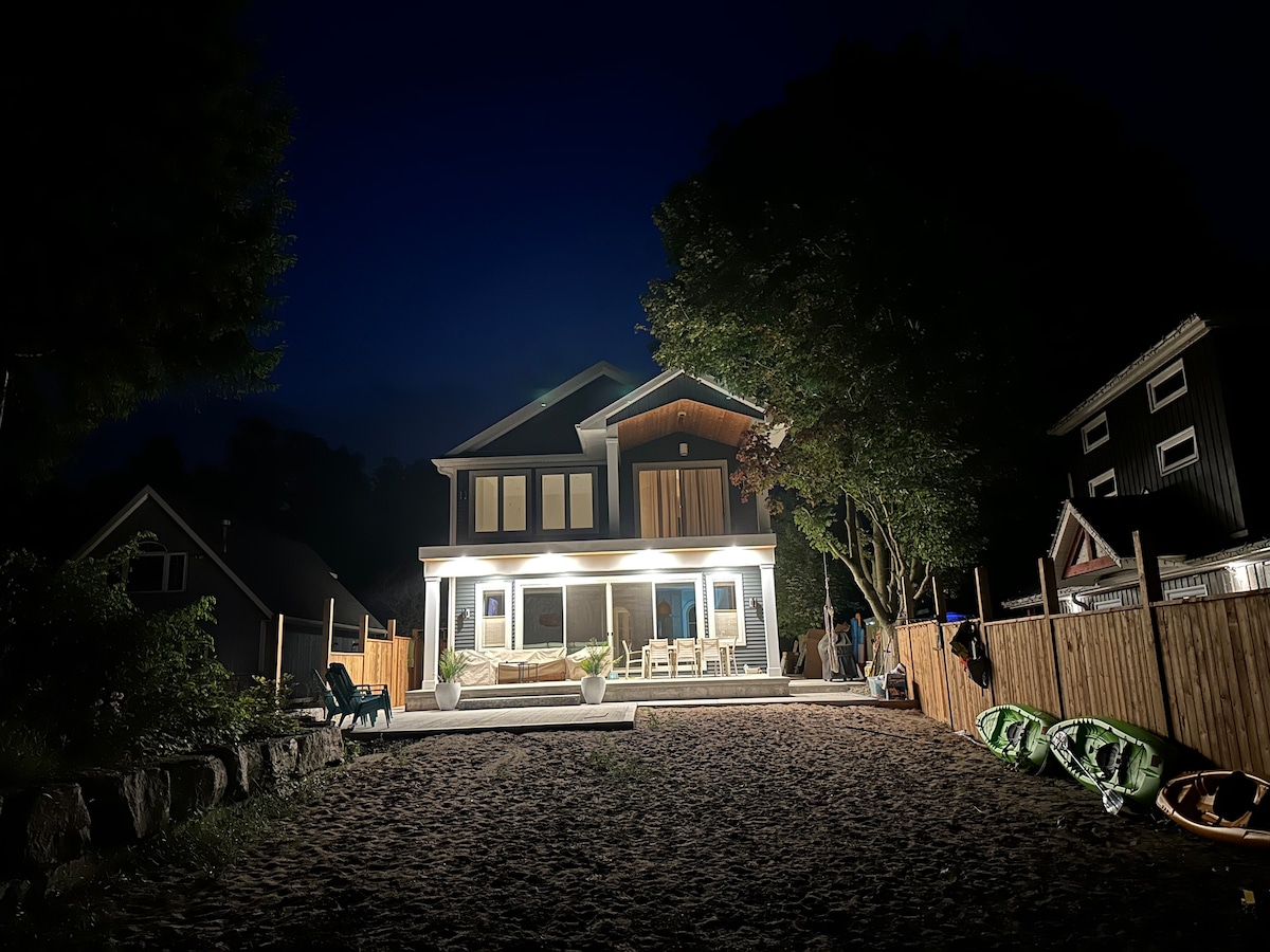 Felújított tengerparti ház kilátással a tóra Open concept living with custom kitchen Földszinti hálószoba queen méretű ággyal. 3 részes fürdőszoba Négyrészes fürdőszoba az emeleten mély áztató káddal. Két második emeleti hálószoba, az egyikben queen méretű ággyal, a másikban queen méretű ággyal, 10' boltíves mennyezettel. A hálószobán kívül egy 22' széles, tóra néző erkély található Tűzrakóhely, grillező. Két perc sétára a vízilovaktól (május-október) Ingyenes Keurig-kávé, ágynemű, fürdőszobai törülközők A bérbeadáshoz legalább25 évesnek kell lennie