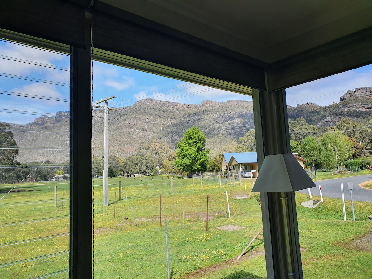 Located in a quiet spot just behind the vibrant Halls Gap main street, Jimmara house is a new stylish holiday home with amazing mountain views and space for couples or the entire family to unwind and relax. Enjoy the large outdoor decking area for alfresco dining, wander to the street which is a 3 minute walk away or simply relax by the indoor wood fire with WiFi and Netflix. Shops, eateries, playgrounds and Gariwerd/Grampians National Park is close enough to walk, explore and enjoy.