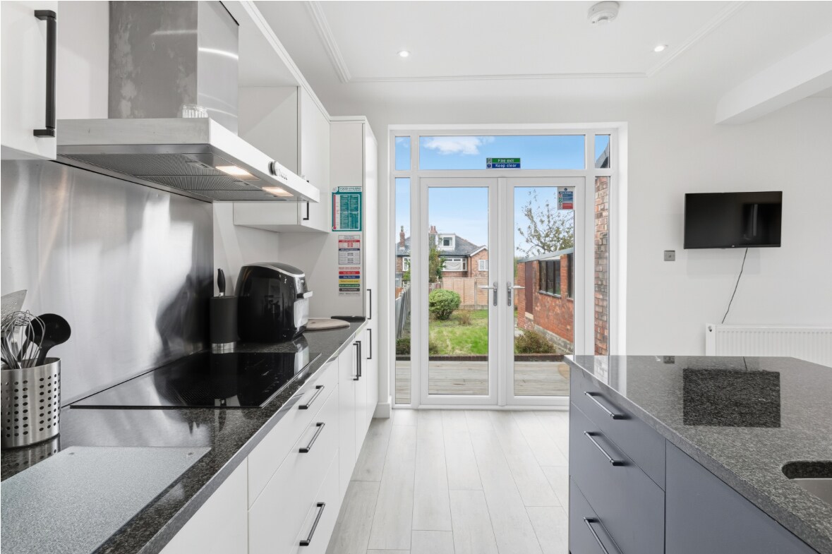 Stílusos 4 ágyas otthon | 6 fő | Nagyszerű összeköttetés Liverpool, Manchester és Chester felé Üdvözlünk a modern szállásodon – egy frissen felújított, négy hálószobás otthonban, amely tökéletes családoknak, csoportoknak vagy üzleti utazóknak. A kényelem és a praktikum találkozása tágas nappalival, világos belső terekkel és verhetetlen közlekedési kapcsolatokkal. 4 kényelmes hálószoba (legfeljebb 6 főnek) Modern, teljesen felszerelt konyha Világos, nyitott terű társalgó és étkező Modern fürdőszoba alapvető felszereltséggel Okostévé és ingyenes Wi-Fi a szálláshelyen