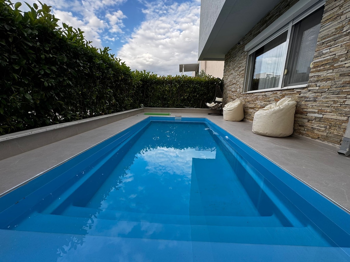 A Penthouse Durres View rád vár! Tágas, napfényes penthouse, közel a homokos strandokhoz és felejthetetlen naplementékhez! Élvezd a tengerre és a városra nyíló kilátást az erkélyről, vagy pihenj a pezsgőfürdőben, kilátással az éjszakai fényekre, kilátással az egész Durres Cityre. Durres az ókori római amfiteátrumáról is ismert, amely a 2. századból származik, és az egyik legnagyobb amfiteátrum a Balkánon, amelynek kapacitása körülbelül 20 000 néző. Egy varázslatos és pihentető szálláshely várhat rád!
