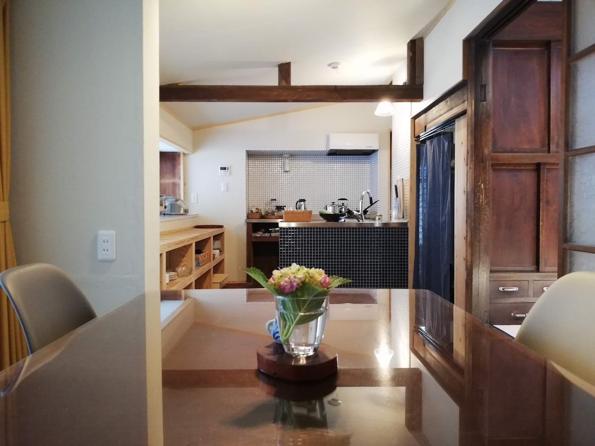 Privát kiadó hely, amely ötvözi a hagyományos japán kominka báját a dinamikus nyitott elrendezéssel. A dohányzószoba, a nappali és a hálószoba egy szellős átriumon keresztül kapcsolódik egymáshoz, így tágas térhatást teremt. A belső teret föld és fa tölti meg, feltűnő szabadon hagyott tetőszerkezettel. A történelmi negyedben helyi tengeri ételeket, egy 300 éves édességboltot, egy 140 éves fürdőházat és zen templomokat találsz. A közelben túrázhatsz, kajakozhatsz, szörfözhetsz, horgászhatsz, kerékpározhatsz stb.