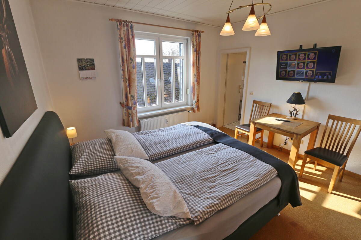 Érezd jól magad Einbeckben az egyik kétágyas szobánkban. A kétágyas szoba 18 négyzetméternyi helyet kínál legfeljebb 2 személy számára. A szoba franciaággyal, gardróbbal, íróasztallal, tévéasztallal, TV-vel, ülőhellyel és tárolóval van felszerelve. A fürdőszobában zuhanyzó, hajszárító, mosdó és vécé található.