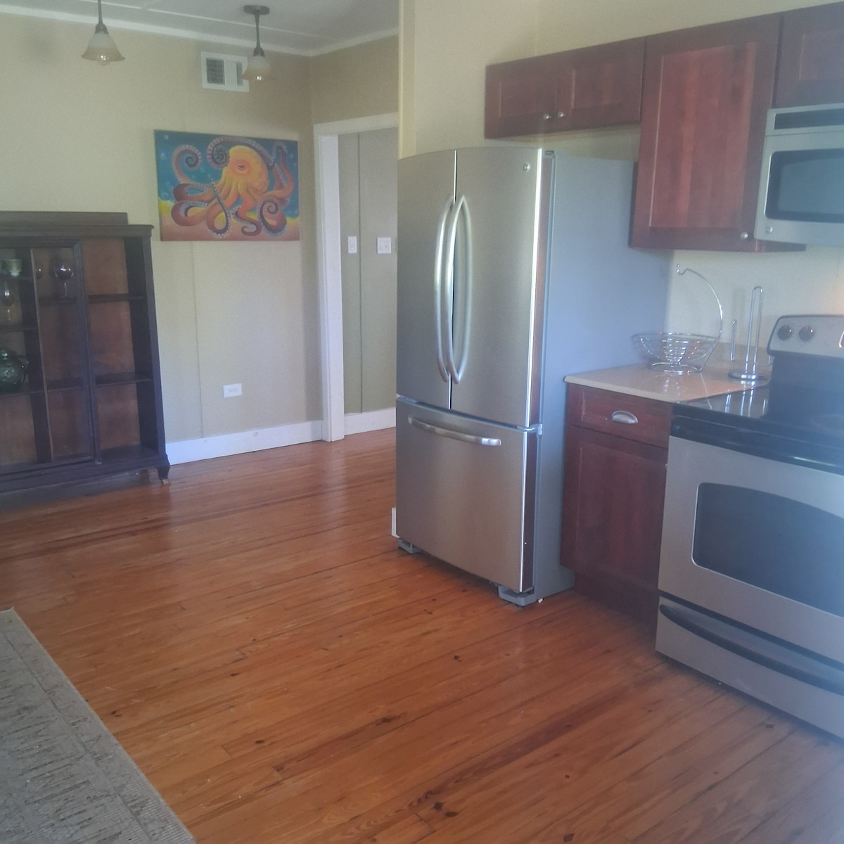 A Riverbend Retreat luxust és otthonos kényelmet kínál a Suwannee folyón. Élvezd a közvetlen folyami hozzáférést, a privát horgász- és csónakkikötőt, valamint a felfedezést segítő ingyenes kajakokat. Az egy hálószobás szálláshelyen található egy teljesen felszerelt konyha, plüss bútorok, kihúzható kanapé és egy privát terasz, amely a vízre néz. Pihenj a csillagok alatti tűzrakóhelynél. Háziállatbarát, parkok és városok közelében, tökéletes hely a lazításra és a természettel való újraegyesülésre.