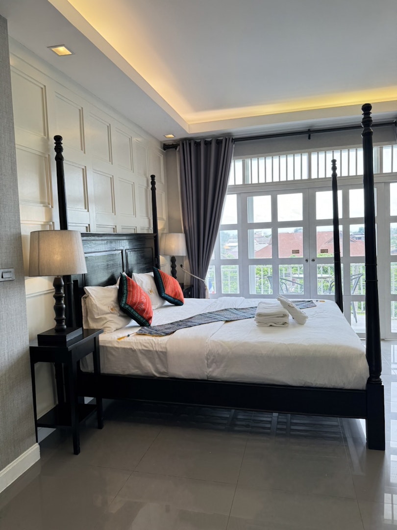Ez az extra tágas vezetői lakosztály további romantikus hangulatot áraszt, a nagy teraszon pedig saját kültéri melegvizes fürdőkád található. Itt napi kilátást nyújthatsz Doi Suthepre, Chiangmai legmagasabb hegyére. A kilátás a naplementében különösen emlékezetes, különösen akkor, ha egy ital mellett élvezhető, miközben egyedül vagy egy szeretett emberrel fürödsz. A belső tér különleges dekorációval, teakonyhával, kényelmes nappalival és erkélyekkel rendelkezik, hogy jobban kapcsolódjon az elemekhez.
