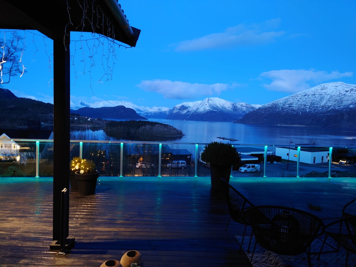 Lakás panorámás kilátással a fjordokra és a hegyekre