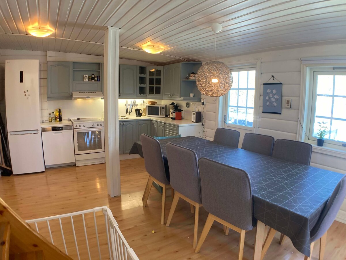 Barátságos vendégház három hálószobával és két nappalival, amelyben legfeljebb 12 vendég szállhat meg. A házban teljesen felszerelt konyha, fürdőszoba, étkező, kandalló és Wi-Fi áll rendelkezésre. Loft hálószobákkal és TV-vel felszerelt nappalival. Kívül egy tágas terasz, pezsgőfürdő, grillterület, nagy pázsit, trambulin és gyönyörű kilátás. Tökéletes családoknak és csoportoknak egész évben. A szomszédban is van WC. Mosógép (mosásonként 100 NOK). Az elektromos autó töltése 200 NOK töltésenként.