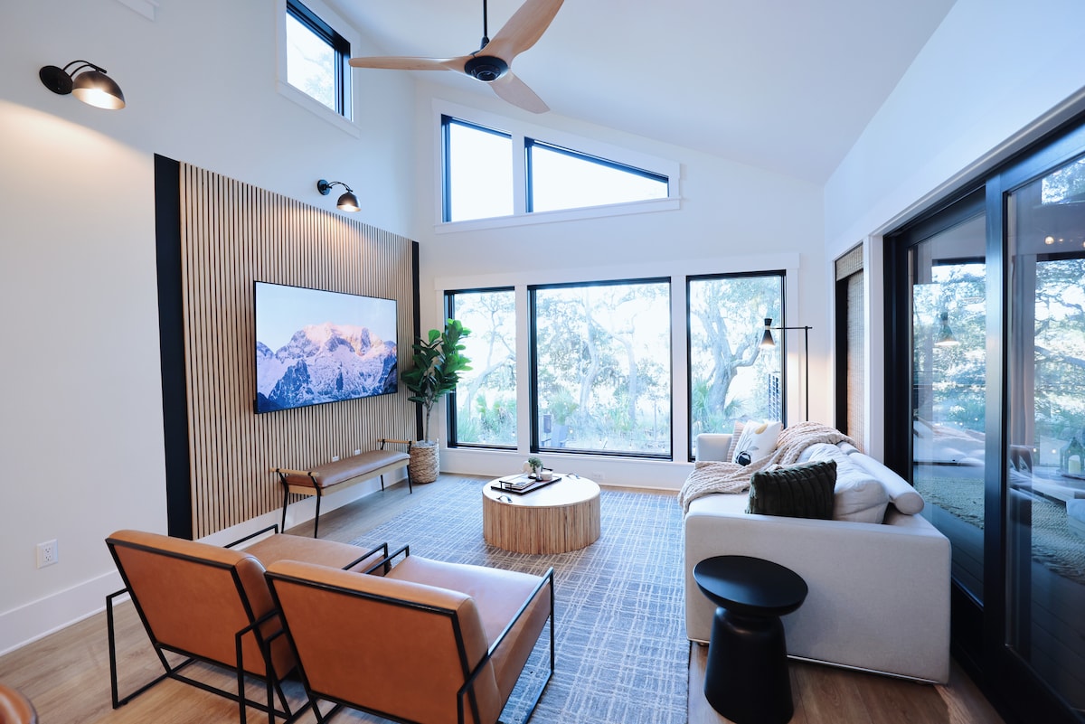 Menekülj ebbe a lenyűgöző rejtett gyöngyszembe, amely a Szent Ilona-sziget szívében található. A Hideaway egy újonnan épült, modern 2br 2ba vízparti házikó egyedi építészettel, lélegzetelállító kilátással és luxusszintű kényelmi szolgáltatásokkal, beleértve a beltéri szaunát is. Csendes helyen, gyönyörű, élő tölgyfák és festői sós vizű mocsarak között rejtőzve ez a tökéletes hely a pihenésre, a kikapcsolódásra és a feltöltődésre. Kényelmes helyen, mindössze pár percre a strandtól, szabadtéri tevékenységektől, vásárlási lehetőségektől és kiváló étkezési lehetőségektől.