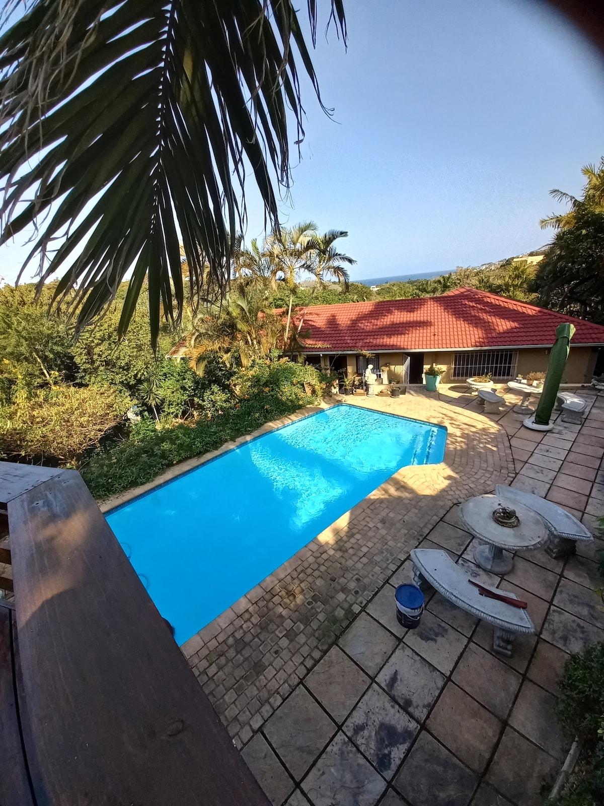 Cottage under our house with a small kitchen bedroom and bathroom. It is a self catering unit with bar fridge, micro wave oven and 2 plate stove with oven and kitchen cutlery and utensils. We have 2 small dogs a Yorkie and Jack Russell. There is a braai facility and a large swimming pool. Tv and wifi available. House is surrounded by a beautiful tropical garden and is quiet and peaceful. We are about 1000 metres from nearest beach. Open parking facility available. Infants and children allowed.