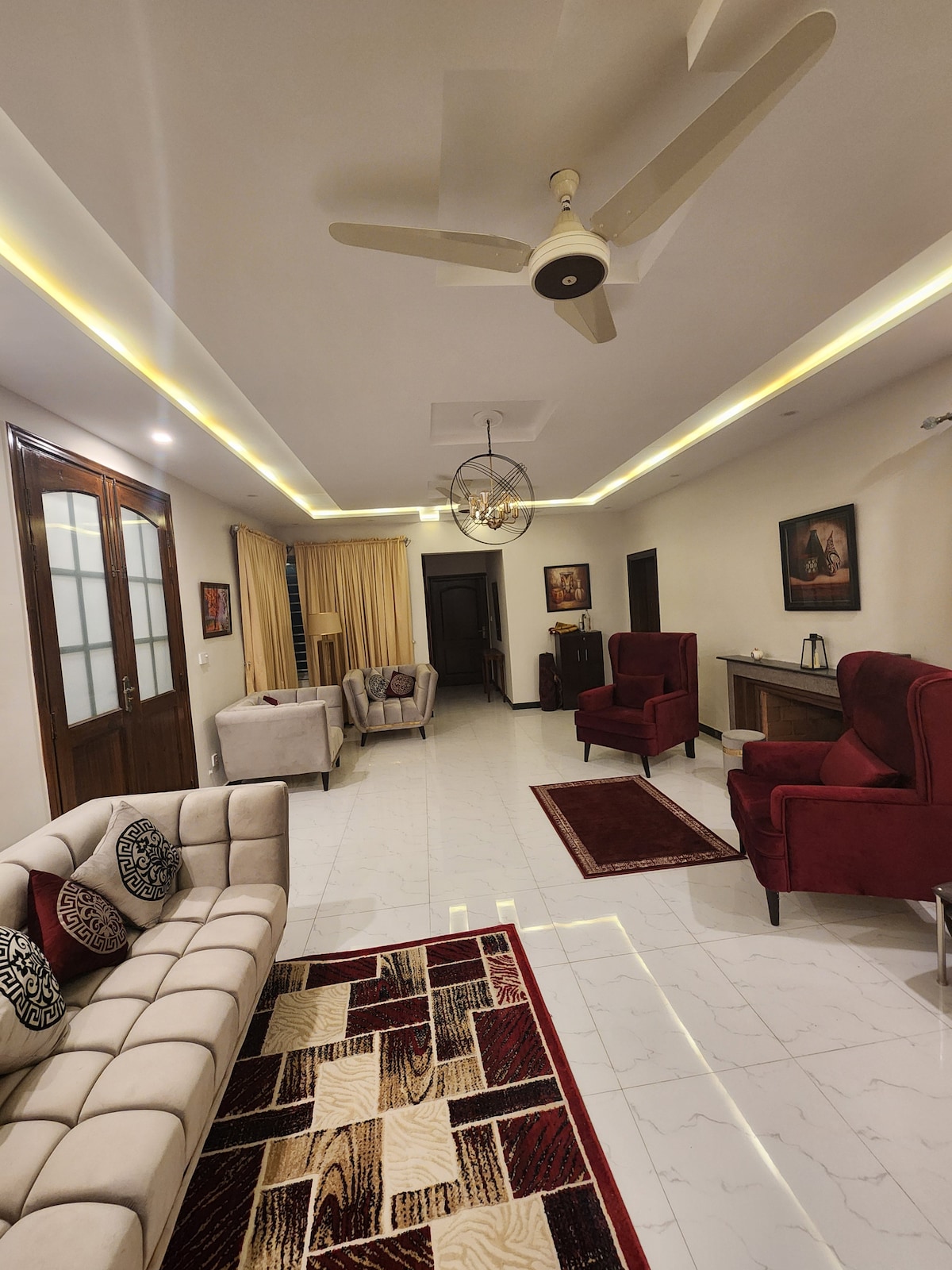 "Luxury 2-Bedroom Upper Portion in New City Phase 2, Wah Cantt. Royal bed sets, luxurious kitchen (no cooking gas), cozy drawing room with sofa set, high-speed WiFi, brand new AC in 1 room. Family-only, unmarried couples not allowed. Local markets & restaurants nearby. 20-min drive to airport, 25-min to Islamabad. Hosted by a lovely family. Brand new house, top location, convenient stay. Fully furnished, comfortable living. Book now for a memorable experience!"