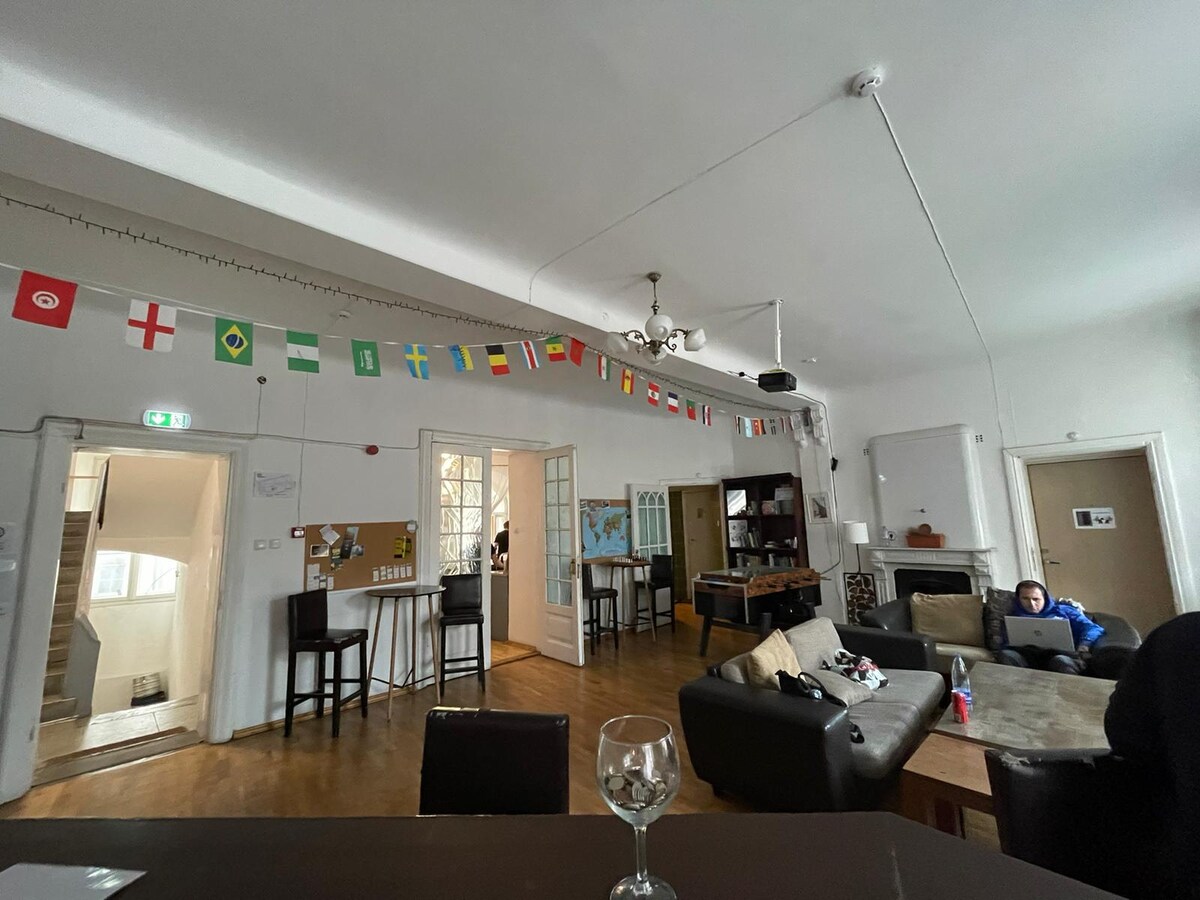 Tallinn nyüzsgő szívében található Imaginary Hostel több mint egy hely, ahol pihentetheted a fejed – ez a társadalmi kapcsolatok és a felejthetetlen élmények központja. Küldetésünk, hogy az utazóknak otthont biztosítsunk az otthonuktól távol, ahol a barátságok kovácsoltak, a történetek közösek, és az emlékek születnek. Függetlenül attól, hogy egyedül utazol, és új barátokat szeretnél szerezni, vagy olyan csoportot keresel, akik szórakoztató és barátságos környezetet keresnek, itt mindent megtalálsz.