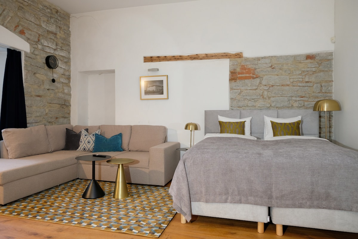 Ez a tágas, 50 m2-es, 1 hálószobás lakás külön fürdőszobával, WC-vel és konyhával rendelkezik. Lakásunk ideális hely akár 4 olyan ember számára is, akik értékelik, hogy elegendő helyük és kényelmes bútoruk van. A belvárosi elhelyezkedésünk mellett gyorsan és egyszerűen elérheted Tallinn összes főbb látnivalóját. Az ingatlan nagyszerű hozzáféréssel rendelkezik a repülőtérhez, a buszpályaudvarhoz, a kikötőhöz és a vasútállomáshoz. Az utaskikötő és a vasútállomás sétatávolságra található. A dohányzás csak az erkélyen engedélyezett