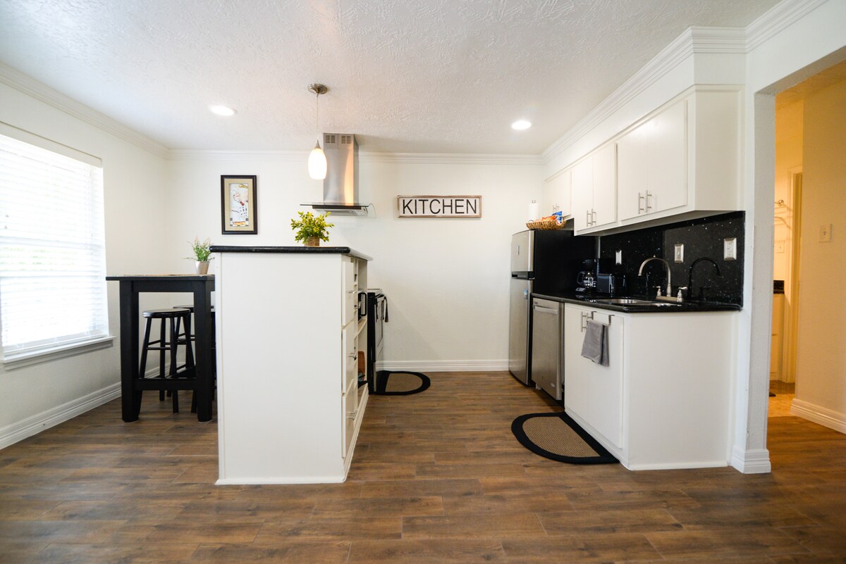 Az újonnan felújított kreatív helyem tökéletes helyen van, egy rövid sétára a Washington Avenue éjszakai életétől, fantasztikus bároktól, éttermektől és családbarát tevékenységektől. Percekre van Montrose, Galleria, Downtown, Medical Center, Soccer, Football és Basketball stadionok. Imádni fogod a környéket, a helyet és a nagyszerű kényelmi szolgáltatásokat. Aludj egy szuper kényelmes KING méretű franciaágyban és Q méretű, pihentető kanapéágyban. A lakásom ideális pároknak, egyéni kalandozóknak, üzleti utazóknak, gyermekes családoknak és csoportoknak.
