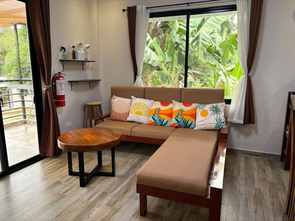 Modern organic yet elegantly-appointed one-bedroom flat. Open concept living room/ kitchenette equipped with all cooking amenities. Casa Arturo is located in a peaceful and centrally located space. Surrounded by mahogany trees Casa Arturo boutique home is 5 km from the airport, 1.6 km from Robinson’s Mall, and steps from North Hway on your way to the Underground River, Port Barton, El Nido or Coron. This is a private unit out of 5 units with a shared swimming pool.