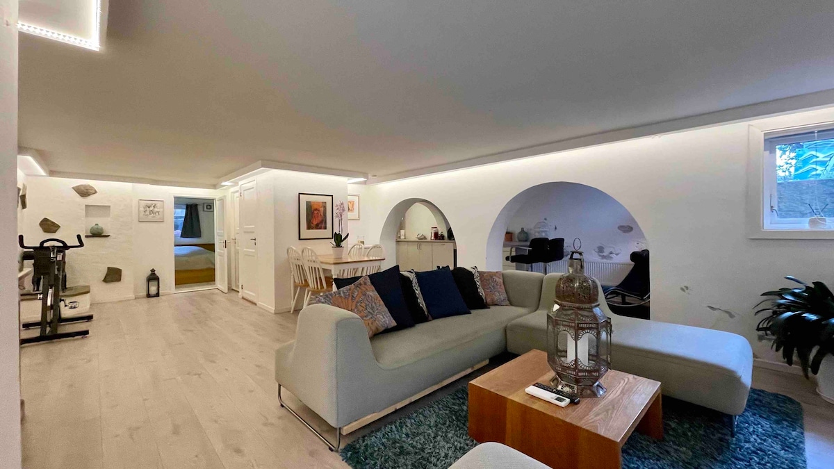 Újonnan felújított alagsori lakás új konyhával és tágas fürdőszobával. Jó tárolóhely egy külön tárolóhelyiségben. Parkolóhely és Zaptec elektromosautó-töltő (3 NOK/kWh). Fűtőkábelek minden padlón és hőszivattyúban. Privát kis, nyugat felé néző terasz jó napsütéssel. Hálószoba gardróbbal és 150 cm-es ággyal a Hattyún. Kanapéágy a nappaliban Hovden Møbel 160 cm-es kihúzható ággyal. Központi elhelyezkedés, körülbelül 2 km-re Haugesund városközpontjától és a Haugesund kórháztól. 3 km-re más kereskedelmi területektől. Ingyenes kerékpárkölcsönzés.