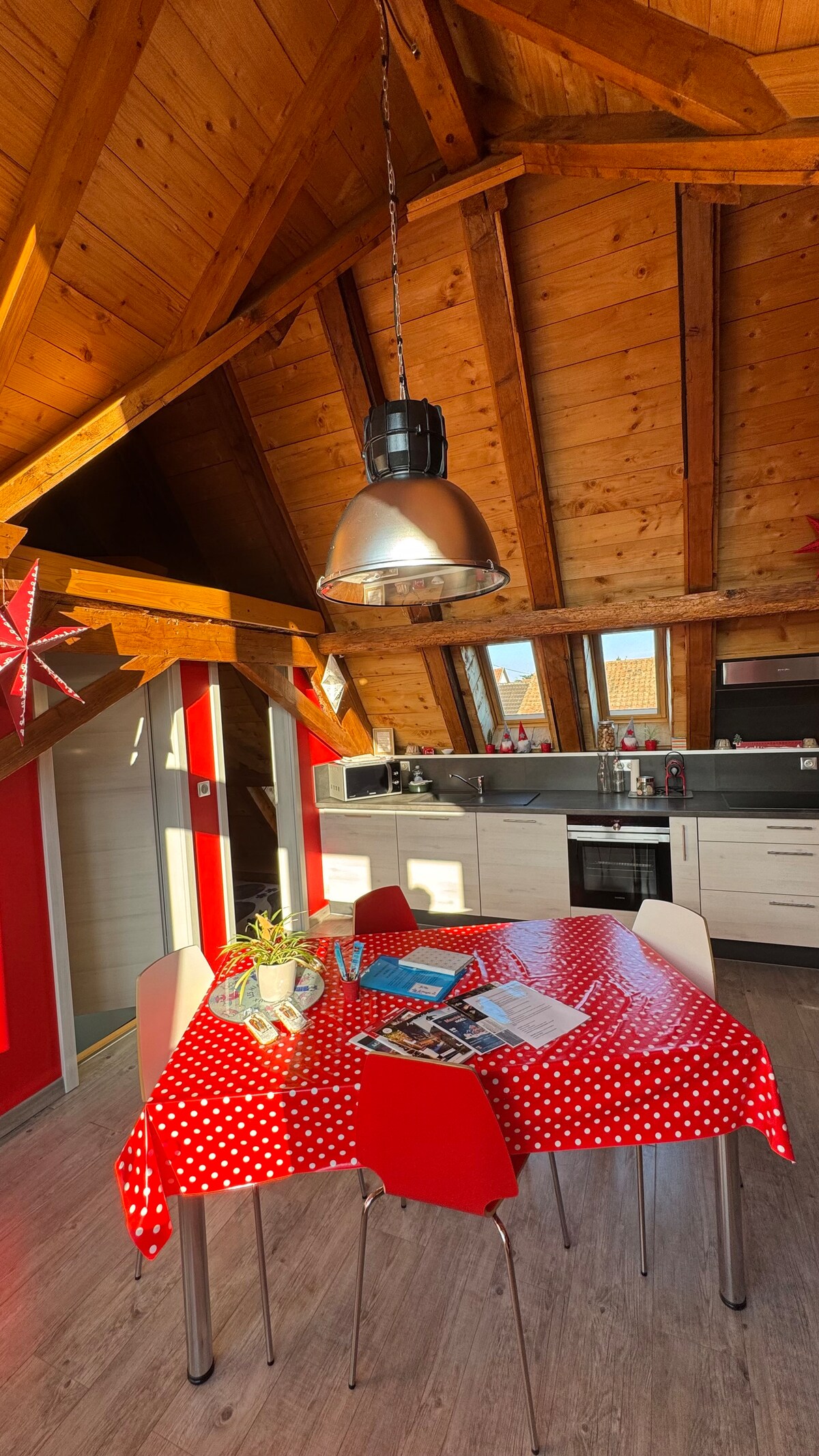 Dans une ancienne grange alsacienne en bois, cet appartement de 40 m² en rez-de-chaussée, sans escalier, est idéal pour 2 à 4 voyageurs. À proximité des commerces et avec un accès rapide à l’autoroute, il se compose de : • Une chambre avec lit double (2×90×200) • Un salon avec canapé convertible (140×190) • Une cuisine équipée • Une salle de bain avec WC • Une terrasse exposée Sud ✔ Parking privatif gratuit ✔ Draps et serviettes fournis ✔ Wifi haut débit (fibre) ✔ Netflix & Prime Video