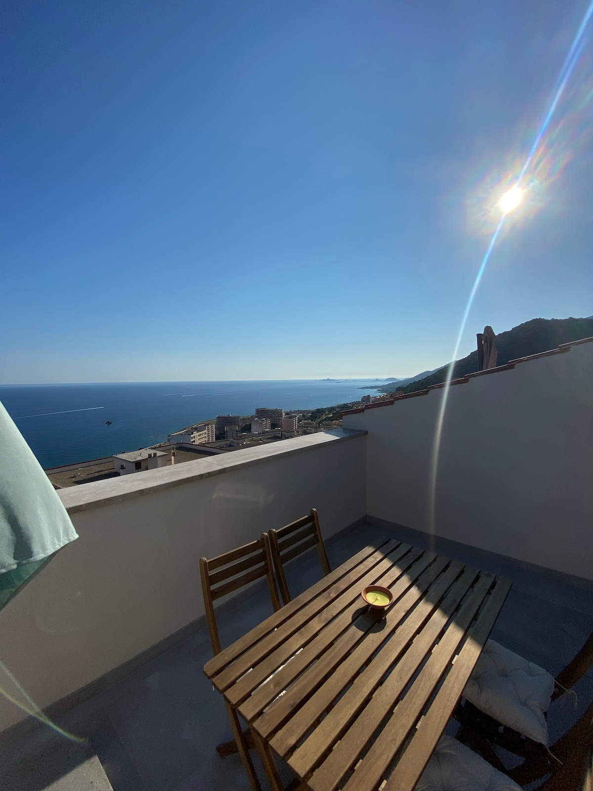 T2 légkondicionált terasz kilátás tengerre citadellára hegyre.