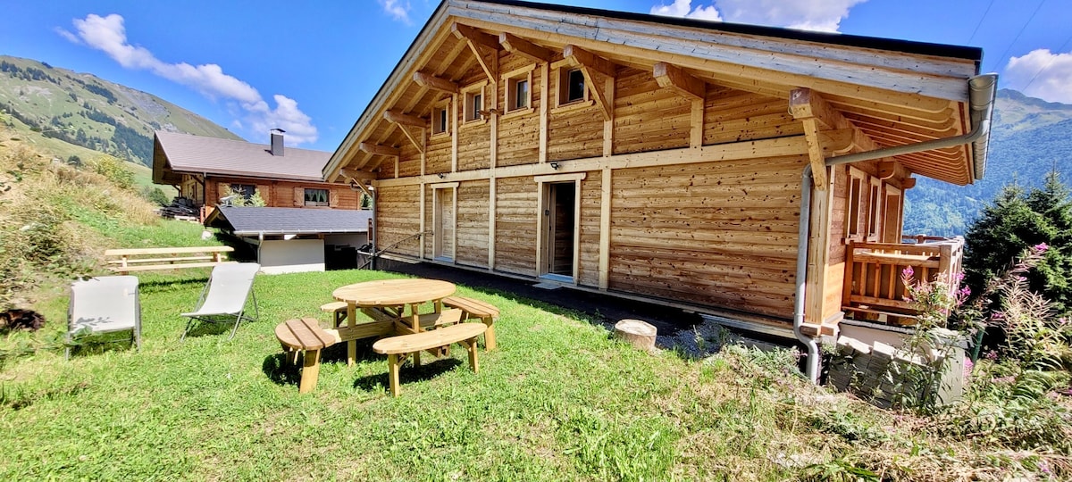 Új faház, lélegzetelállító kilátás a Mont Blanc-ra