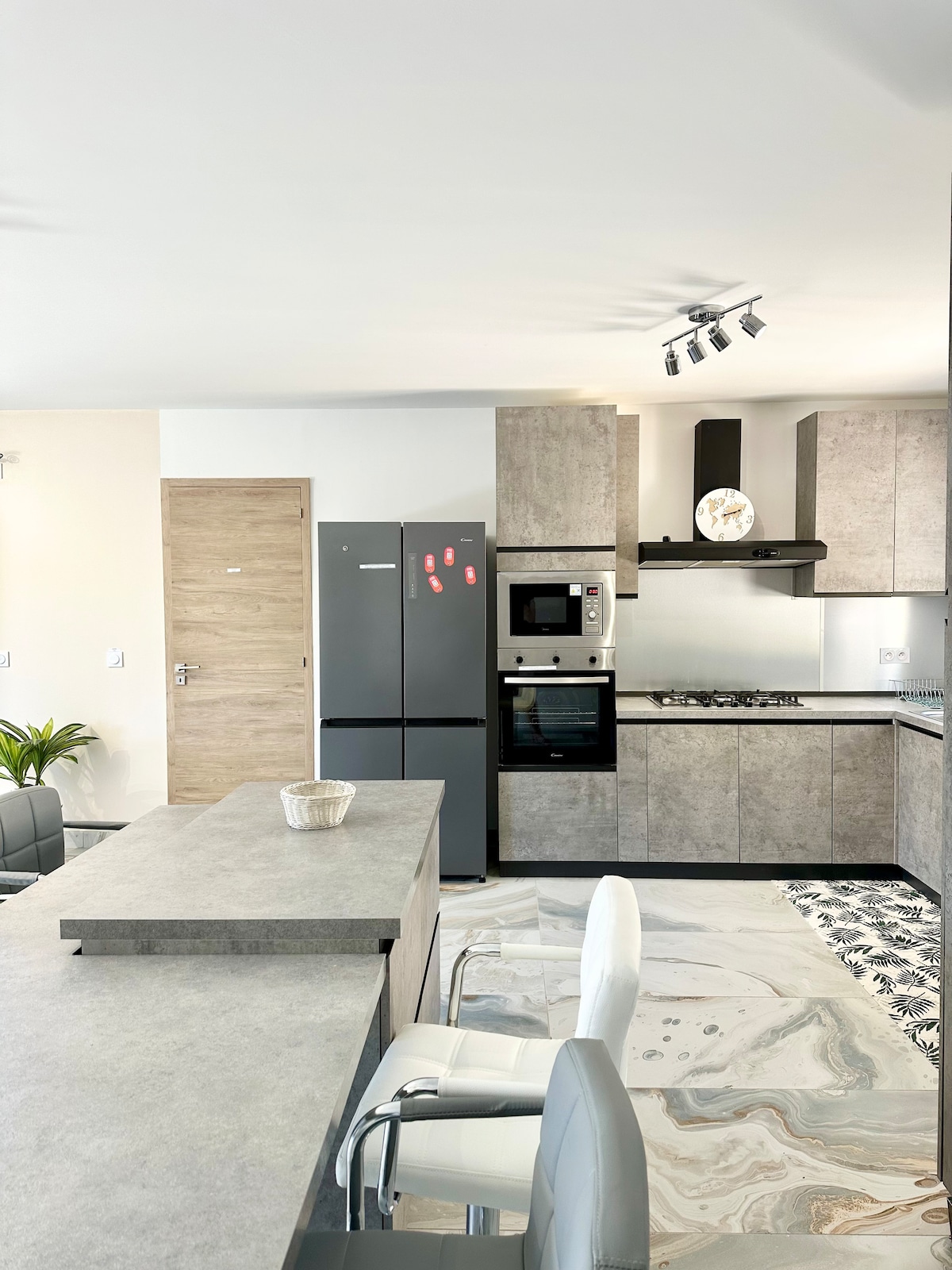Szép 3 szobás lakás a Maison du Bonheur földszintjén. Nagy terasz kerti bútorokkal, jakuzzival, grillezővel. A szálláshely elkerített és zárt. Lenyűgöző kilátás nyílik a tóra és a hegyekre, közel van a sziklamászáshoz, az erdőhöz és számos sétaútvonalhoz. A békés és autentikus ház lágy, tiszta és meleg légkörrel vár. Itt az egyszerűség és a nyugalom kéz a kézben jár… A gondosan átgondolt dekoráció természetes anyagokat, lágy árnyalatokat és a szívvel választott tárgyakat ötvöz…