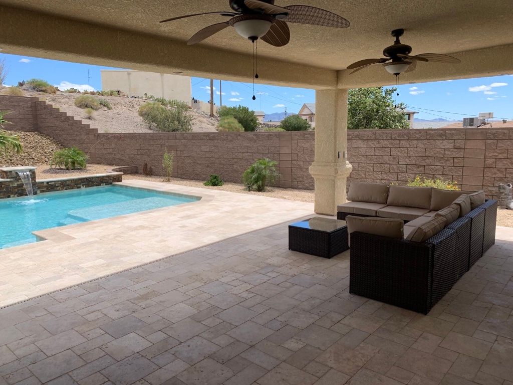 LAKE SIDE OF THE HWY...and one of Havasu's most requested locations!! Beautiful Cutting Edge Home with almost 2000 sft of gorgeous upgraded living space including 3 bedrooms, 2 baths, open kitchen and great room design. Travertine floors, slab granite tops, soft close cabinets/drawers, this home will exceed your expectations. Private backyard with new gunite pool, 2 water features, travertine patio floors / decking, professional landscaping. message me and Ill send you a video of the property.