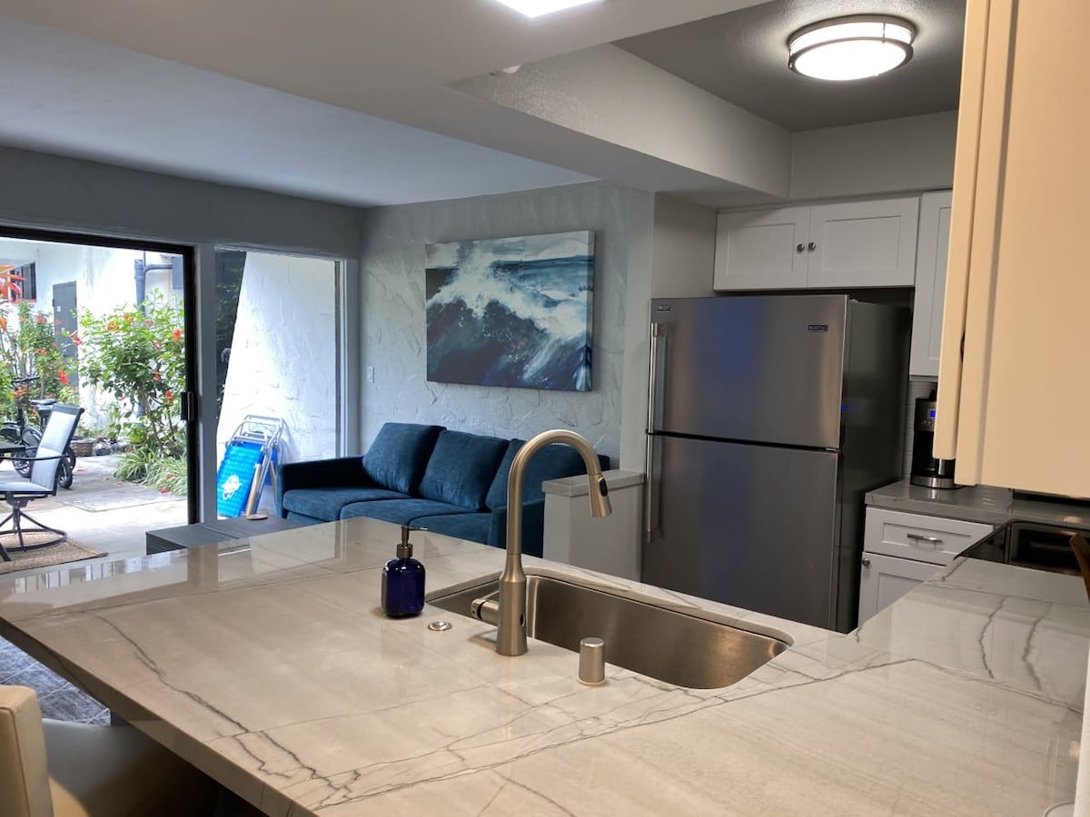 Újonnan felújított, kényelmes társasházi lakás a földszinten, kilátással a kertre. Hozzáférés két medencéhez, mesterséges strandhoz és grill-étkezőhöz, amely az óceánra és a naplementére néz. Ez a lakóegység külön bejárattal rendelkezik a fürdőszobába a vendégek számára. Nagy séta a zuhanyzóban, king méretű ágy és queen méretű kanapéágy. Szobában mosás, két medence – 1 óceánparti, 1 kertre néző. Nemdohányzó egység.