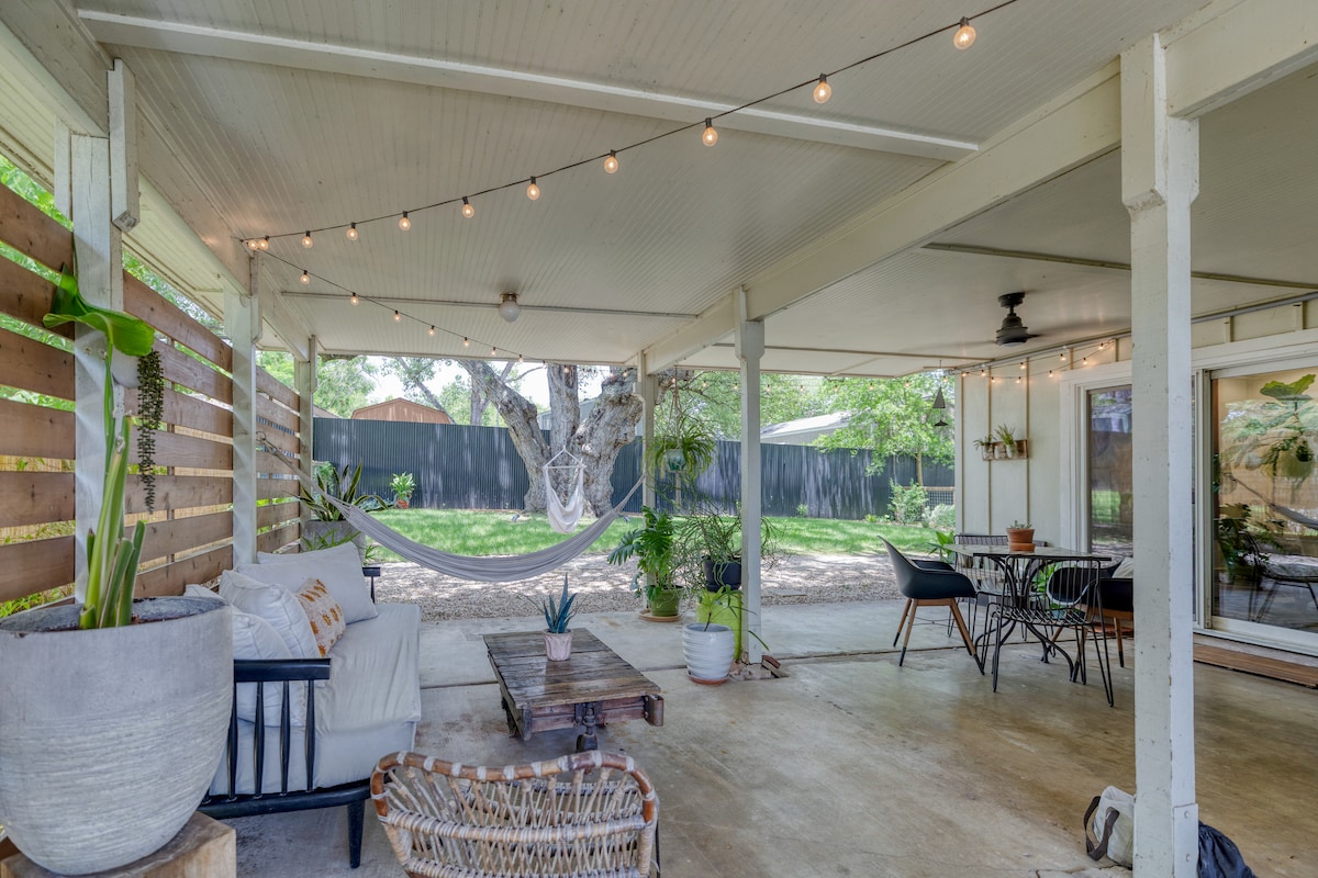 Üdvözöl a Giant Oak House, amely közvetlenül a South Congress Ave mellett található! Ez a század közepi otthon betonpadlóval, boltíves mennyezettel és hátsó verandával rendelkezik, amely nagyszerű a pihenéshez, miközben egy nagy, gyönyörű, 300 éves tölgyfára néz. Csak 10-15 perc a belváros, a Zilker Park és a repülőtér! A South Congress csak 7 percre van!