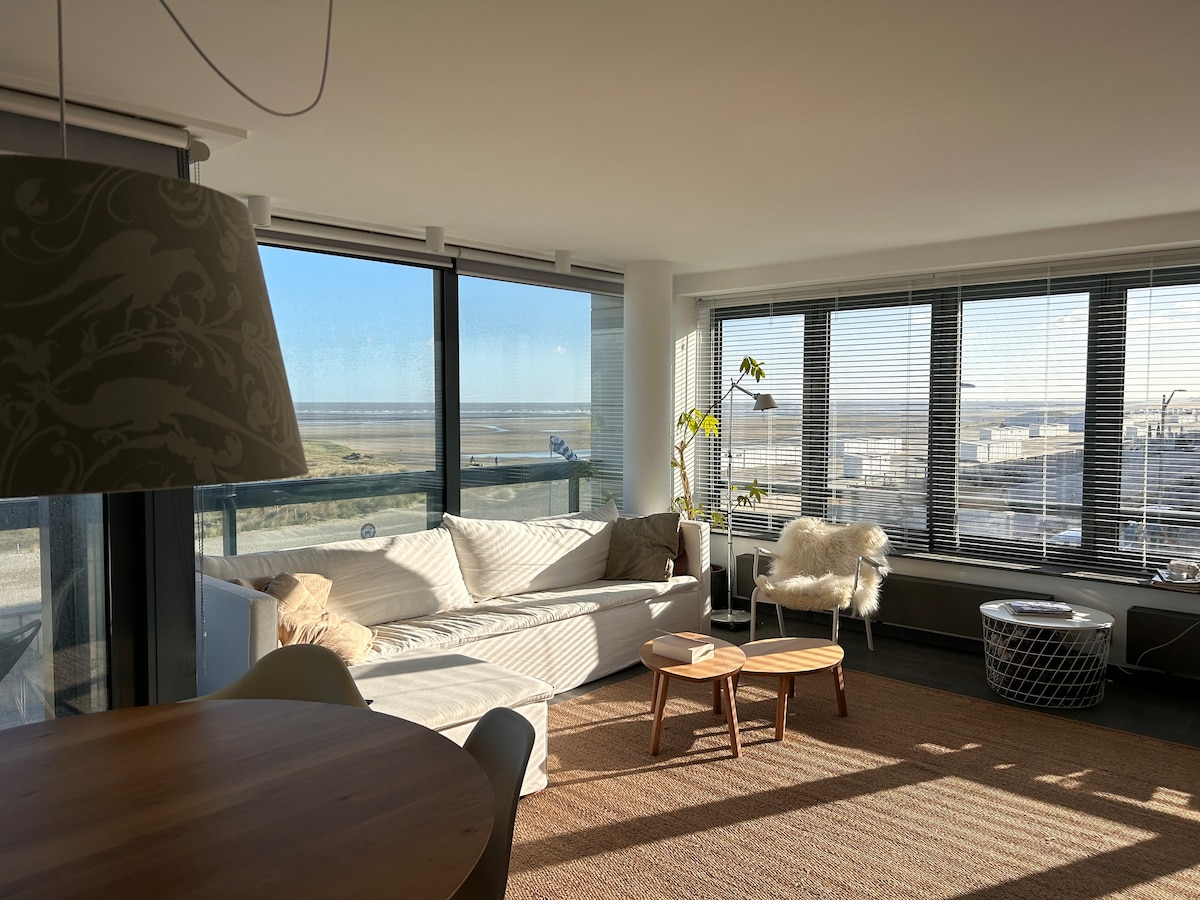 Fully renovated, modern flat with breathtaking views of the sea and the port of Zeebrugge, located on the 6th floor and equipped with every comfort for up to 4 people. There is 1 bedroom with double bed, 1 bedroom with bunk beds (each with a smart TV), a bathroom with large rain shower and a separate toilet. Also available: a closed garage box (15€/day) a few minutes' walk from the apartment and a beach cabin (15€day).