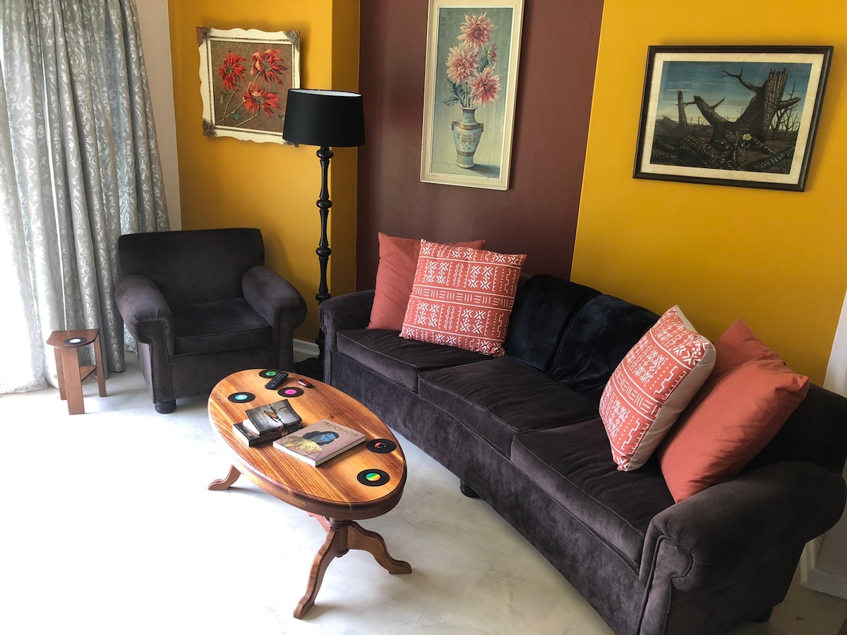 A Tuis & Tevrede egy hangulatos két hálószobás lakás, amelyben akár négy vendég is elfér, és tökéletes kisgyermekes családoknak. A kültéri játszótér a kicsik örömére szolgál, miközben a szülők pihennek. Csendes, biztonságos környéken található, mindössze 200 méterre a sziklás ösvénytől, a Fernkloof Természetvédelmi Terület és a golfpálya közelében. A vendégek élvezhetik a gyors Wi-Fi-t is. A szabadtéri tevékenységek szerelmeseinek a foglalás után elküldjük a válogatott helyi kalandokat tartalmazó listánkat. Háziállat csak jóváhagyással.