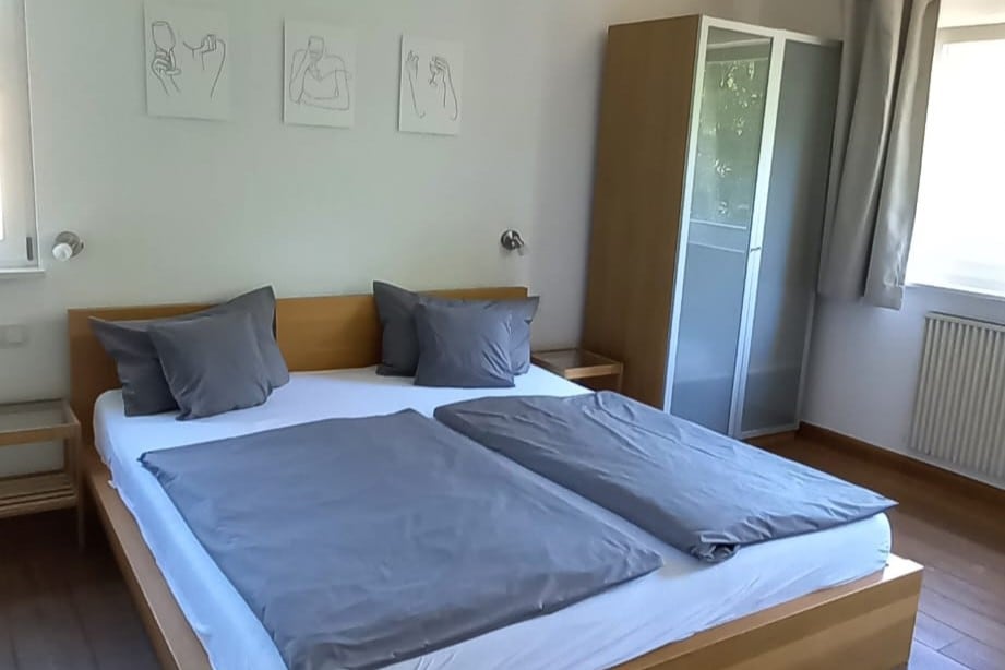 Find tranquility in our new and cozy apartment with a sloped roof and air conditioning. In the living room, you will find a comfortable seating area as well as a projector for relaxed hours. The fully equipped kitchen has an oven, electric stove, refrigerator, dishwasher, coffee machine, and kettle. The bedroom features solid bio-wood furniture and a comfortable double bed. The bathroom offers a shower and a toilet. Upon request, our pool table can also be used.
