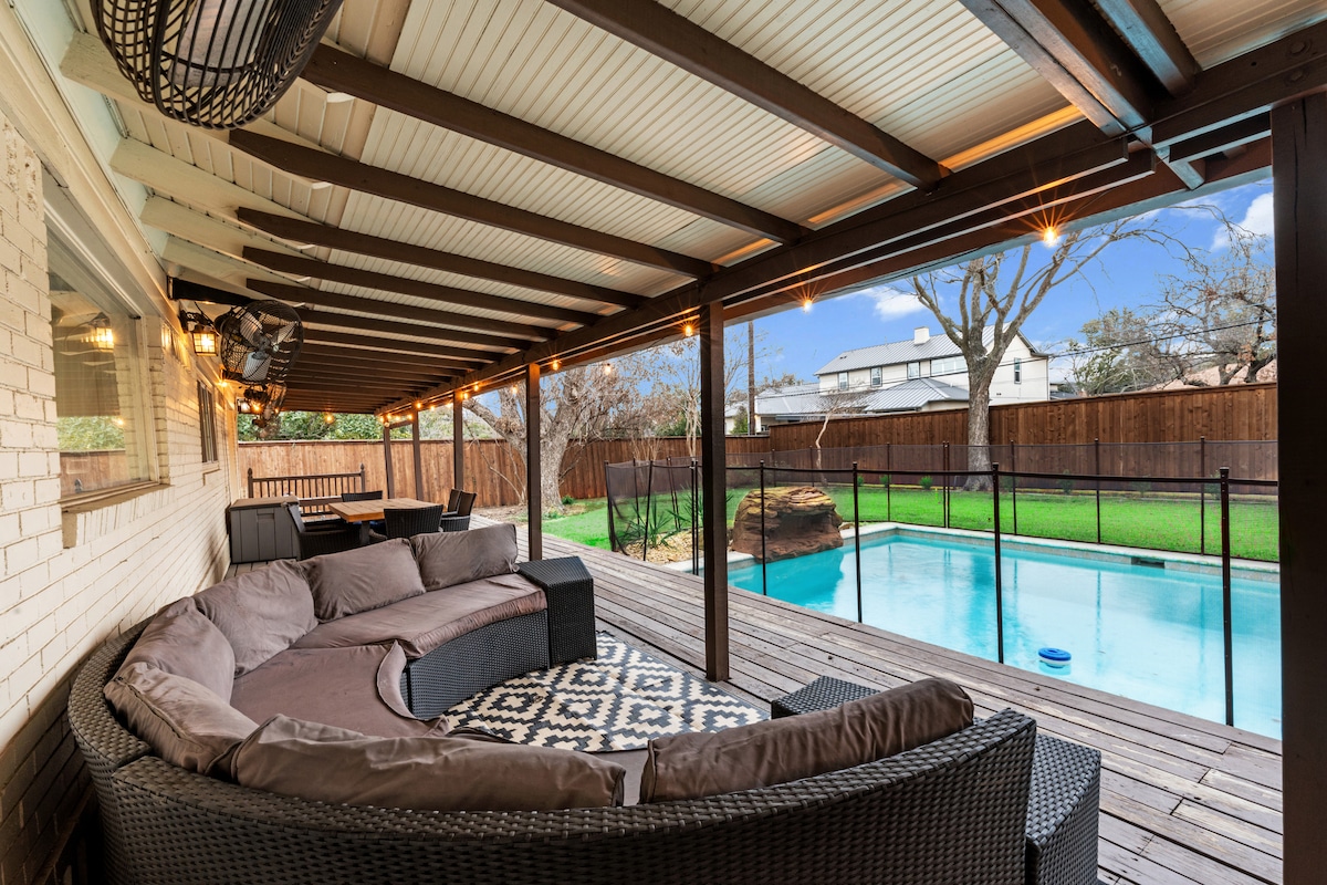 Nagyszerű elhelyezkedés mindössze 10 percre Dallas belvárosától és a Love Field repülőtér közelében. Hozd el az egész családot, és élvezd ezt a stílusos és tágas búvóhelyet a Lovers Lane/Inwood Village közelében, egy csendes közösségben. Ez a hely tökéletes a kikapcsolódásra és az emlékek készítésére. Medencével, terasszal, kültéri étkezővel, grillezővel, tűzrakóhellyel és Smart TV-vel a szabadtéri szórakozáshoz. Amikor bent vagy, élvezd a gyors wifit, a Smart TV-ket, a Peloton-t, a szaunát, a biliárdasztalt és még sok minden mást! A tökéletes hely!